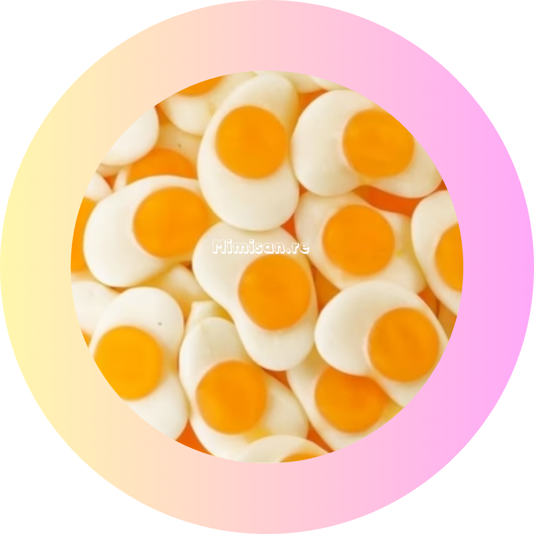 - INGRÉDIENTS : Sirop de glucose, sucre, gélatine bovine Halal, eau, humectant E420, acidifiants (E330, E270), correcteur d'acidité (E325), arômes, agents d'enrobage E901, E903, colorants et/ou concentrés E160c.