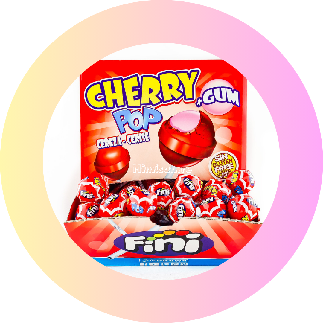 Sucette de la marque Fini au délicieux goût de cerise 🍒 avec un chewing gum ✨